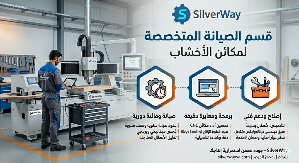 تعتبر Silverway الحل التقني المتكامل لمصانع الأخشاب، حيث نقدم مجموعة واسعة من الخدمات والمنتجات التي تضمن استمرارية الإنتاج بأعلى كفاءة. نحن متخصصون في صيانة وبرمجة مكائن مصانع الخشب، مما يساعد على تحسين الأداء وتقليل الفاقد.